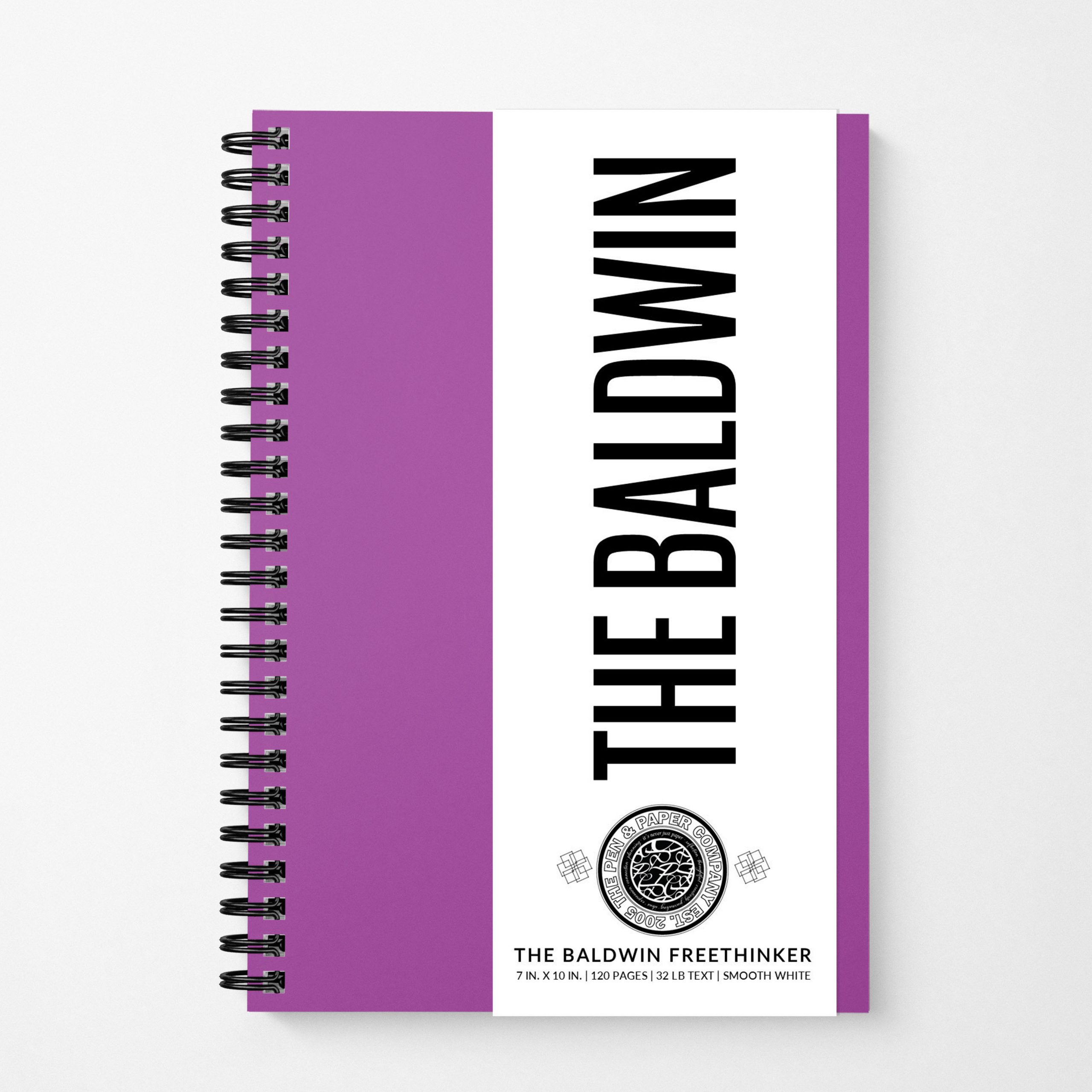 The Baldwin Freethinker is perfect for journaling and notes. It is 7 in. x 10 in. and can be crafted with almost any color cover you like. The default paper is 80 lb. premium text which is great for avoiding pesky bleed through. However, you can choose any smooth text stock between 60 lb. – 100 lb.